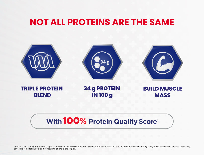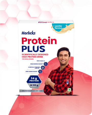 For every 1kg of body weight, you need 1g of protein daily. Horlicks Protein Plus helps in providing 30% of your daily protein need.